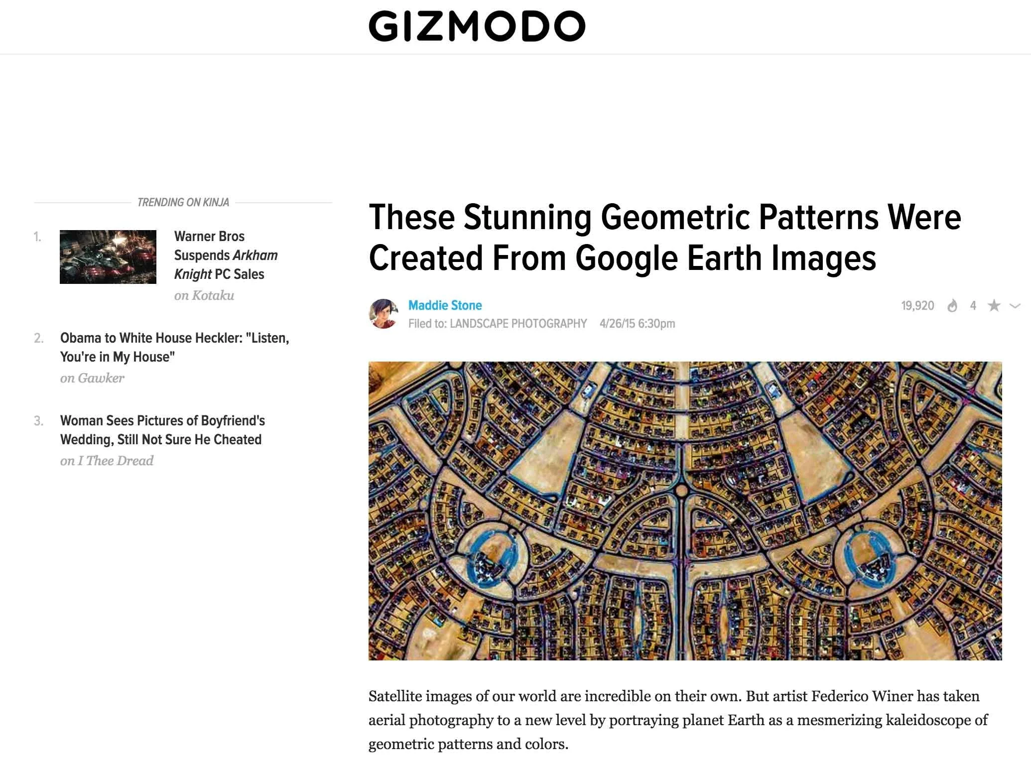 “Satellites Offer a Psychedelic Perspective of Earthly Architecture” writes Sami Emory for the very first piece in the mainstream media.