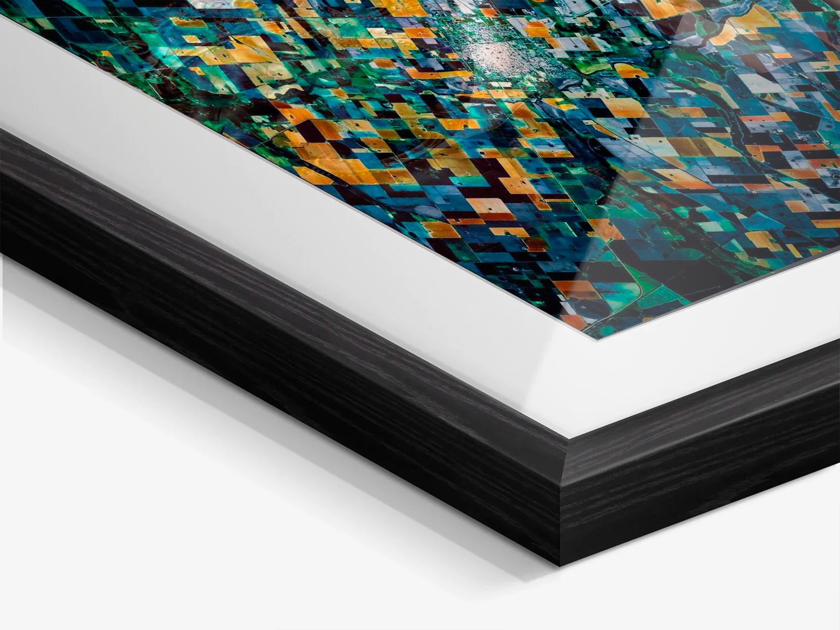 Print is classically framed with a solid wood black or white frame under acrylic glass mount. Frame is 0.79 in. (2 cm.) thick all around; Paper used with this option is Fujicolor Crystal Professional Archive.