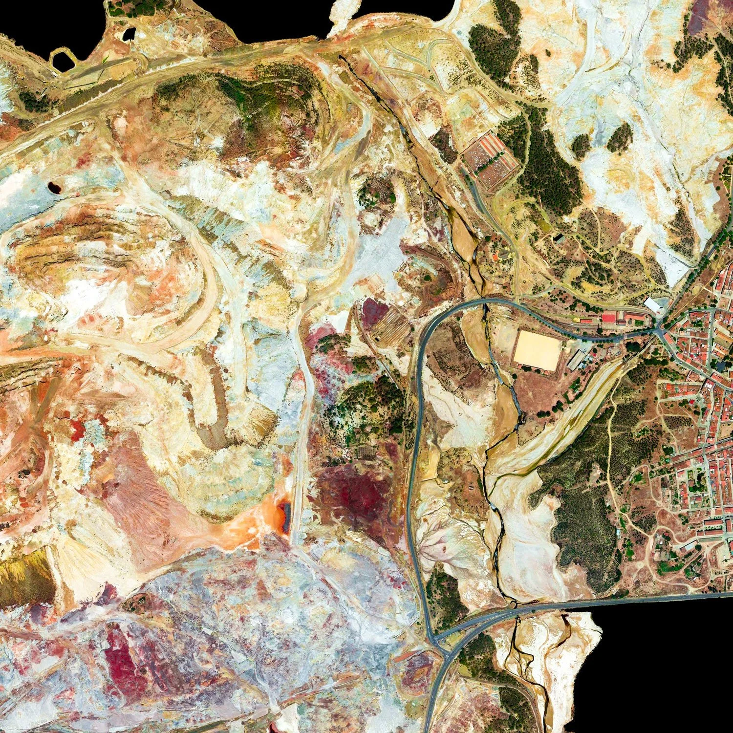 Corta Atalaya is the largest open-pit copper mine in Europe and was at one time the largest in the world. It was actively mined until 1992, now is flooded but is expected to be reopened soon.