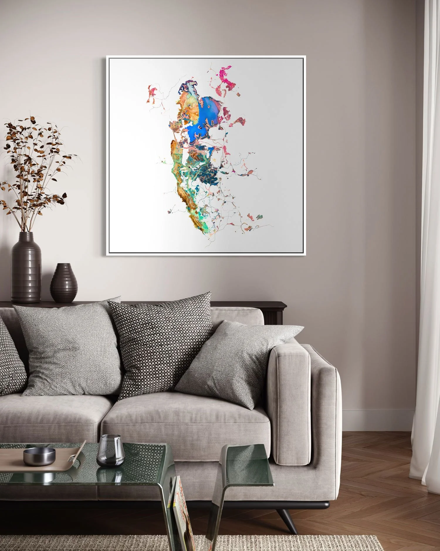 Installation in white Gallery frame - 120 x 120 cm