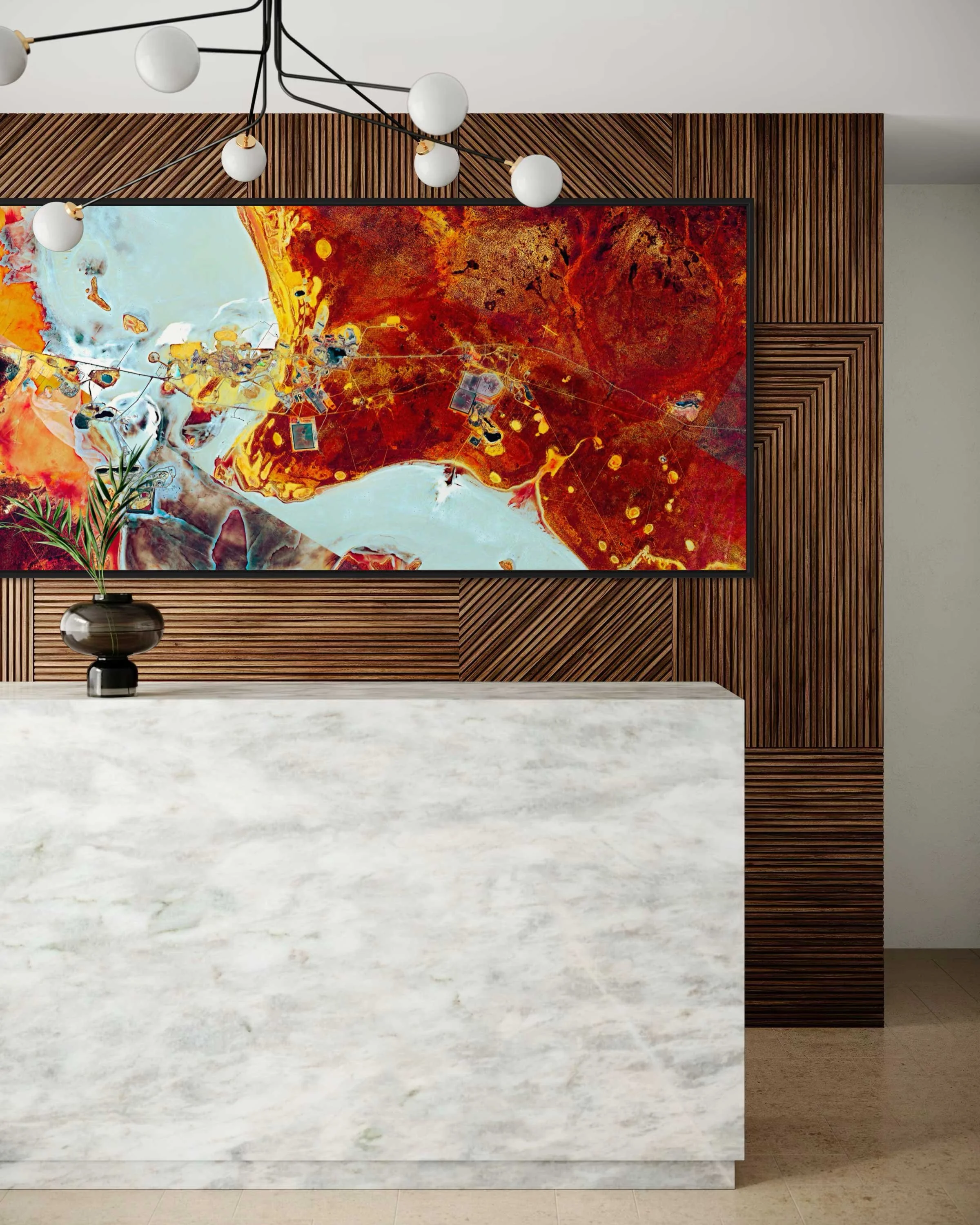 A satellite fine art piece capturing the vast expanse of one of Australia’s top gold producers. Located near Lake Lefroy in Western Australia’s Eastern Goldfields, St Ives has yielded over 10.5 million ounces of gold since the 1980s. Operated by Gold Fields, the site blends underground and open-pit mining within the mineral-rich Norseman-Wiluna Greenstone Belt, transforming the landscape into a striking abstract composition.